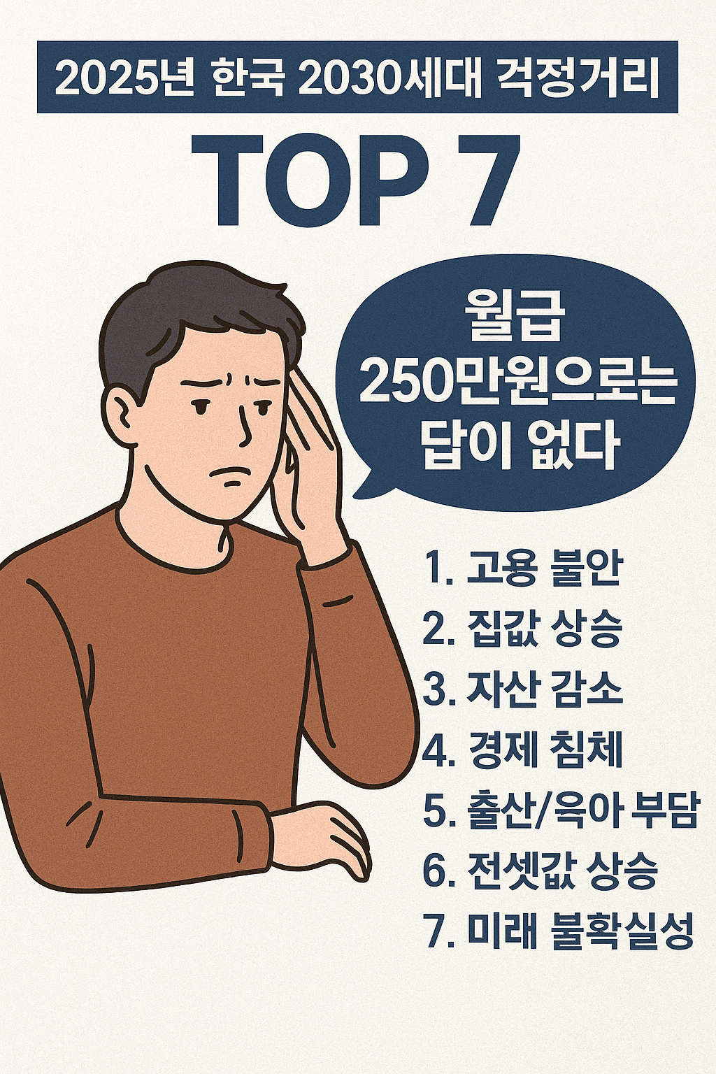 나만 이런 걱정을 하는 걸까? 아니다. 지금 이 글을 읽고 있는 2030세대라면 누구나 공감할 현실적인 고민들이 있다. 세후 250만원이라는 현실적인 월급으로 2025년을 살아가는 우리가 진짜로 걱정하고 있는 것들을 솔직하게 이야기해보자.